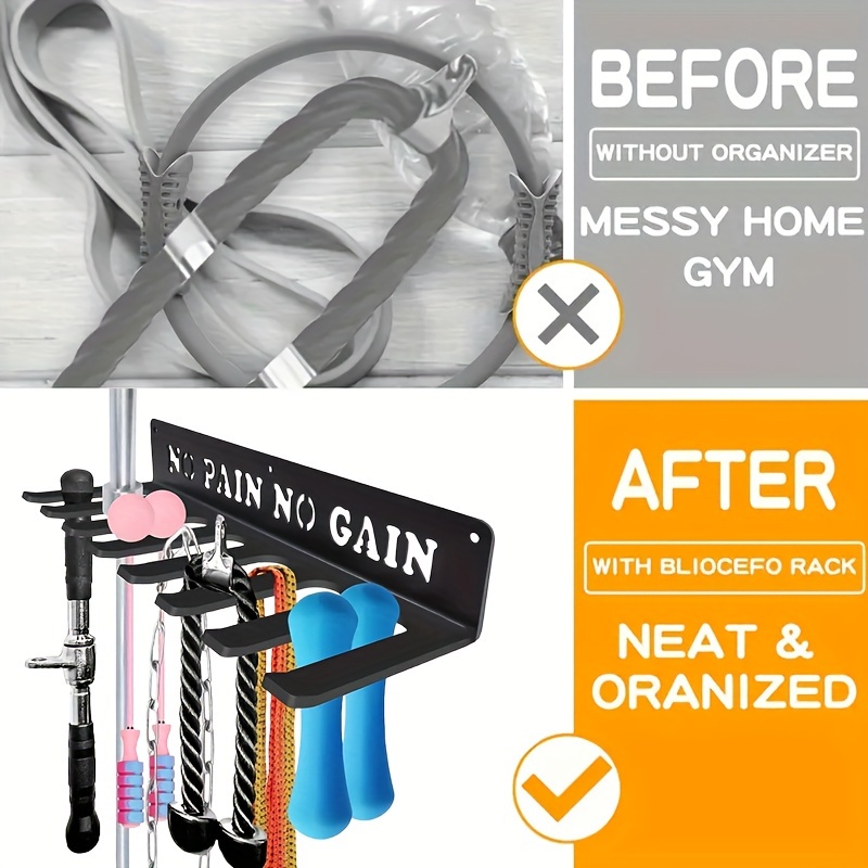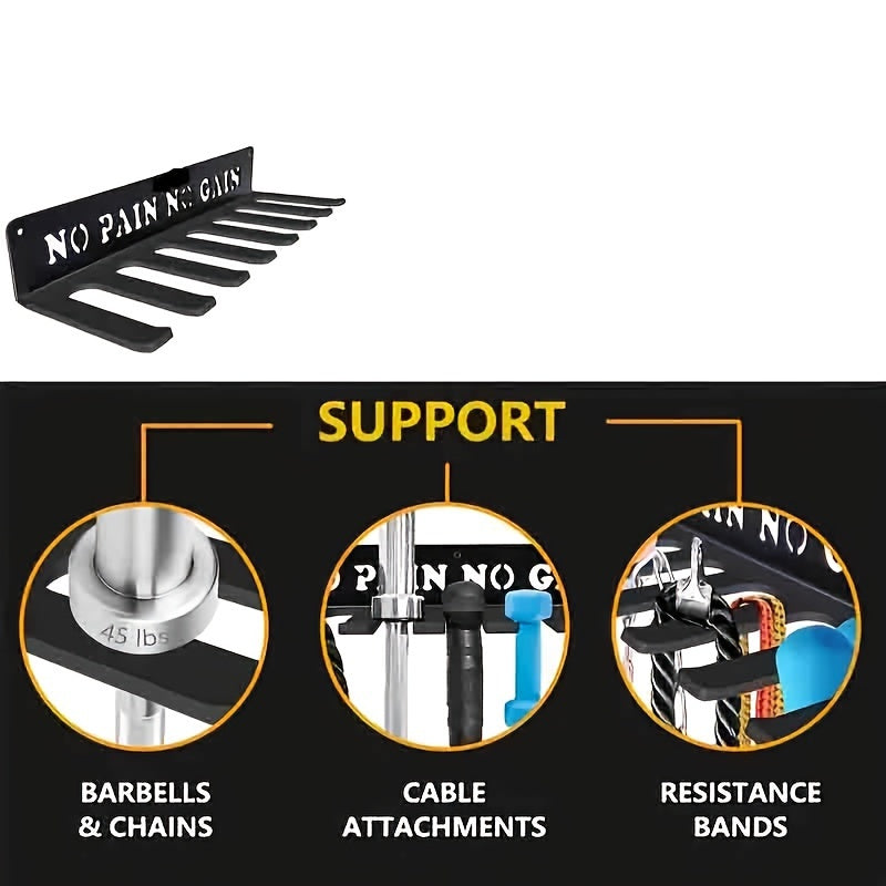 1pc 8 Hook Wall Mounted Fitness Storage Rack For Resistance Bands, Jump Ropes & Weight Belts - Multifunctional Gym Equipment Organizer